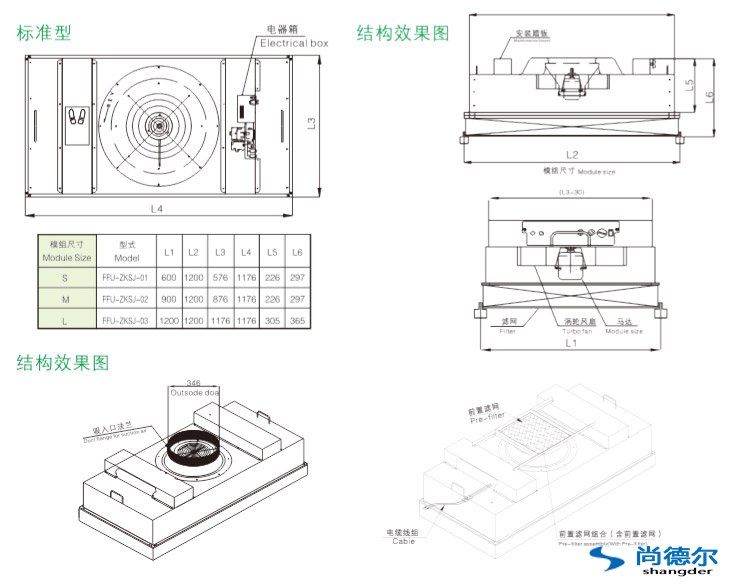 各種FFU最多由以下幾部分組成(按從上到下、從內到外的順序),視不同廠家組成部分可能有所減少。1、預過濾器;2、外殼體;3、風管(guǎn)連接(jiē)部件;4、電機5、葉輪;6、氣流均衡裝置;7、過濾器;8、金屬防護網;9、刀緣;10、控製元件