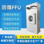 深圳市(shì)尚(shàng)德爾淨化設備有限(xiàn)公司是防爆FFU淨化(huà)單元生產廠商。防爆FFU,是一種自帶動力具有過(guò)濾功能的末端送風裝置;風機從頂部將空氣吸 入並經HEPA過濾,過濾後將潔淨空氣從出風麵均勻送出,為潔淨環境提供潔淨空氣和微粒過濾控(kòng)製。 各種FFU最多由以下幾部分組成(按從上到(dào)下(xià)、從內到外的順序),視不同廠家組成部分可能有所減少。 1、預(yù)過濾(lǜ)器;2、外殼(ké)體(tǐ);3、防爆接線管;4、防爆電機5、葉輪;6、防爆接線盒(hé);7、過濾器;8、金 屬防護網;9、刀緣;10、控製元件 分體形狀的FFU有如下優勢:① 使(shǐ)過濾器的更換變得方(fāng)便;② 減小了安裝過程中的勞動強度; 整體(tǐ)形(xíng)狀的 防爆FFU有如下優勢:① 增加了FFU的(de)密封性(xìng),有效(xiào)防止了泄漏。② 有利於降低(dī)噪音。③ 有利於(yú)減小振動